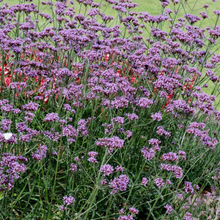 - Rastové návyky: Verbena rigida je nízko rastúca trvalka, ktorá dosahuje výšku 30-45 cm a šírku približne 45-60 cm. Má vzpriamené stonky a hustý, rozvetvený rast.